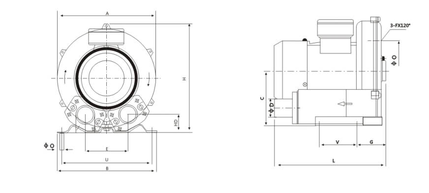 Máy thổi khí công nghiệp áp suất cao đặc biệt có thể được tùy chỉnh theo yêu cầu, với lưu lượng tối đa từ 21m³/h đến 470m³/h. Sản phẩm này chủ yếu được sử dụng cho thông gió công nghiệp, xử lý nước thải, quá trình sấy khô và làm mát, cũng như phát điện.